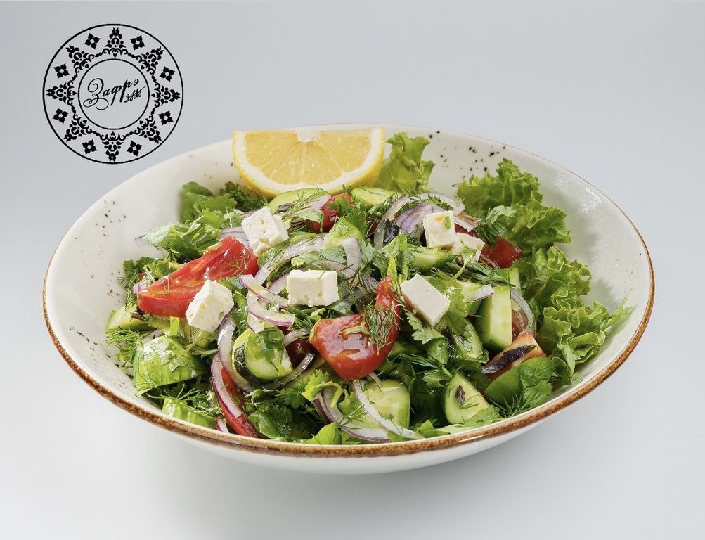 Салат Чобан 480 руб. В корзину 250гр. 250гр. Описание Описание (Бакинские огурцы, помидоры, лук красный, зелень, лимон, оливковое масло)