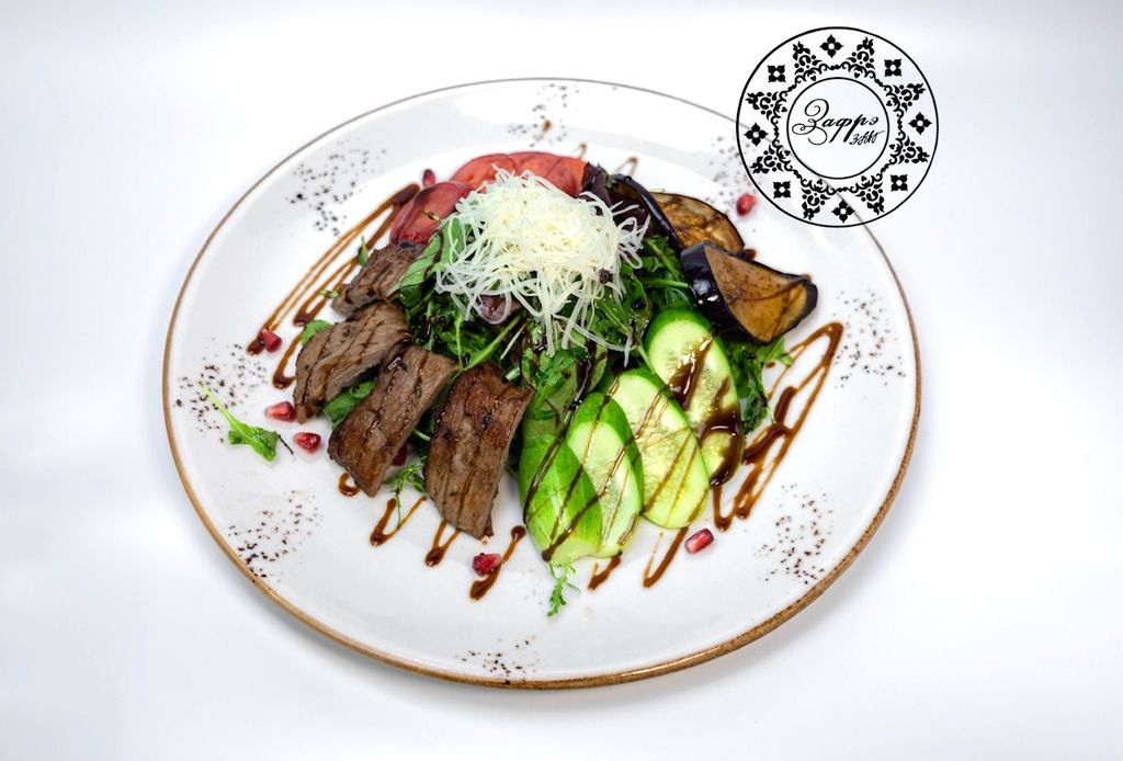 Салат из Телятины 690 руб. В корзину 250гр. 250гр. Описание Описание (Ростбиф, свежие огурцы, помидоры, перец болгарский, лук красный, петрушка, масло оливковое, молотый перец)