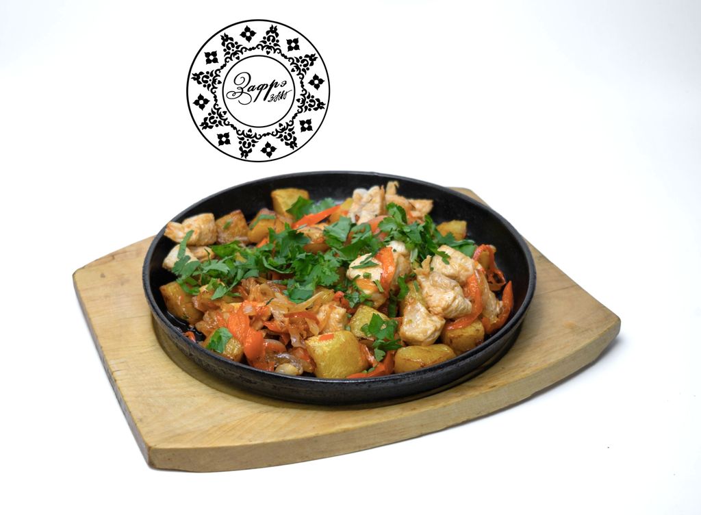 Курица по-домашнему 560 руб. В корзину 280гр. 280гр. Описание Описание (Нарезанное филе из куриных грудок, картофель, болгарский перец, помидор, лук)