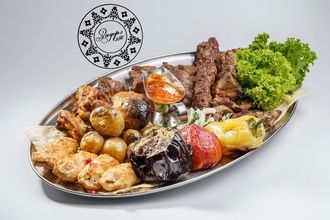 Шашлык Зафрэ из мяса 3680 руб. В корзину Бастурма из телятины, свиная шейка, курица, люля-кебаб из баранины, люля кебаб из курицы, молодой картофель,овощи, соус аджика Бастурма из телятины, свиная шейка, курица, люля-кебаб из баранины, люля кебаб из курицы, молодой картофель,овощи, соус аджика